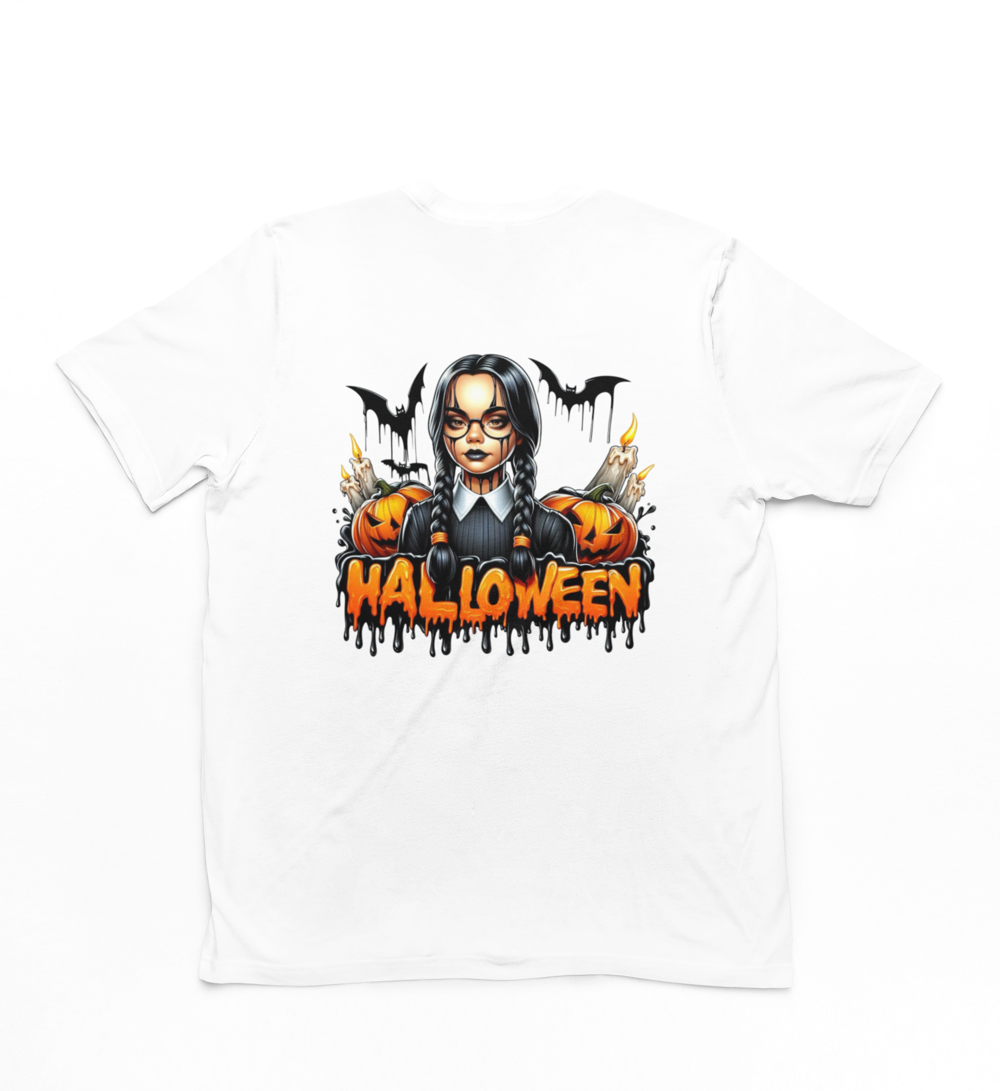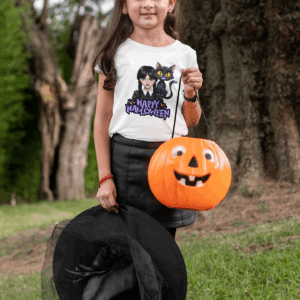 🎃 Ideale per Halloween: comoda da indossare sotto costumi o per creare un look ispirato a Mercoledì Addams Zucca, la maglietta unisce stile, qualità e praticità. Dai un’occhiata anche alla maglietta di Mercoledì Addams con il gatto nero di Halloween.