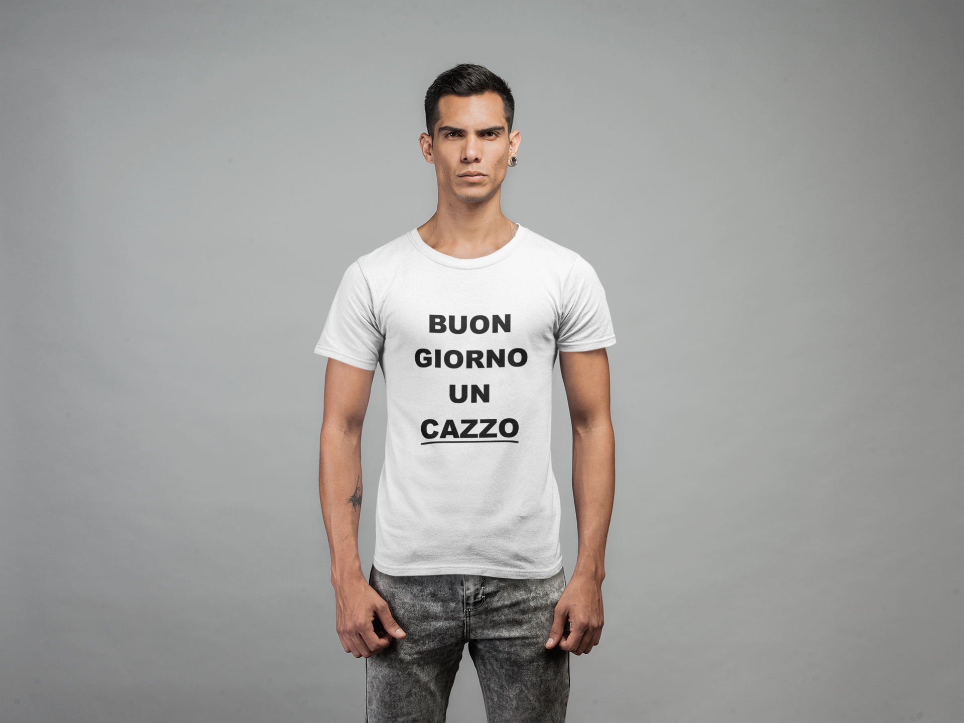 T-Shirt Buongiorno un Cazzo Divertente Unisex | Bianca o Nera
